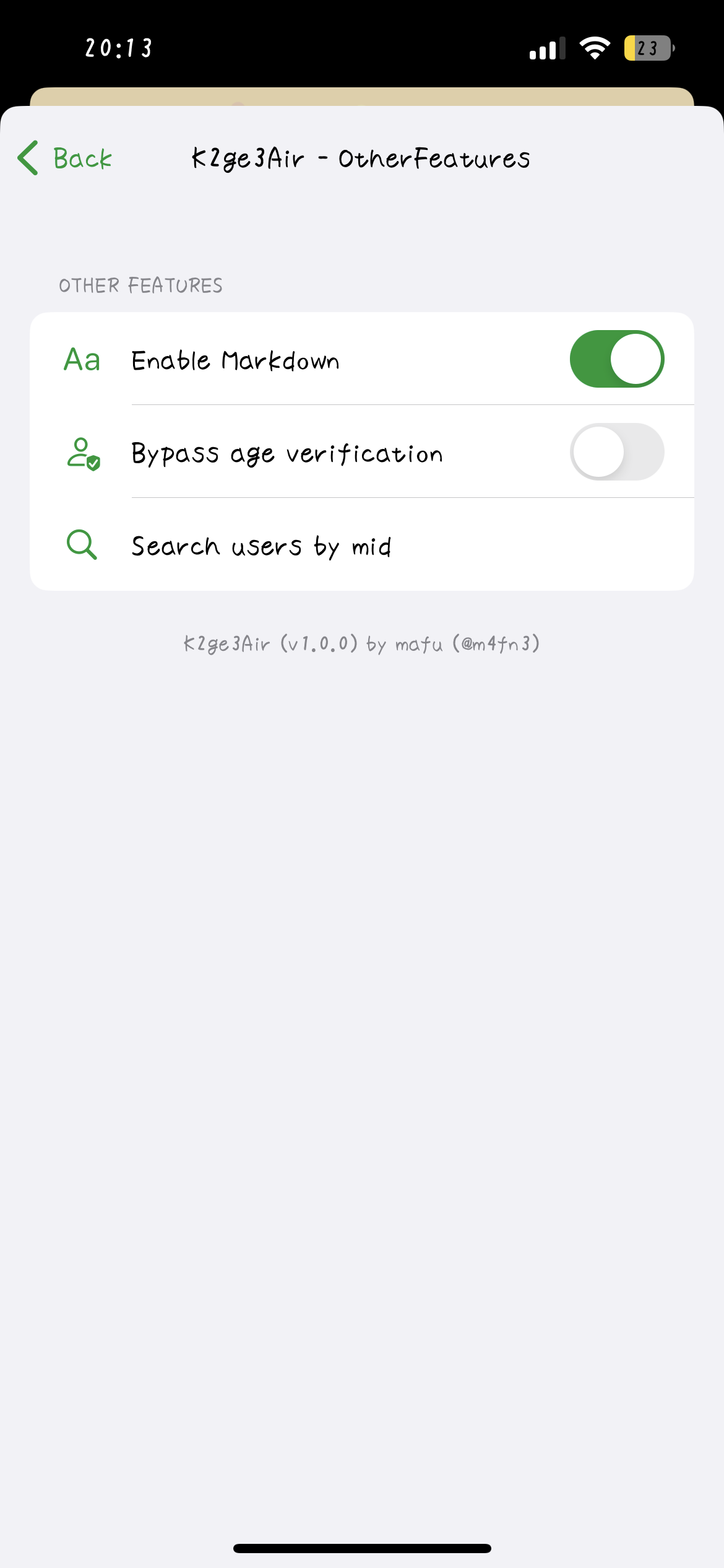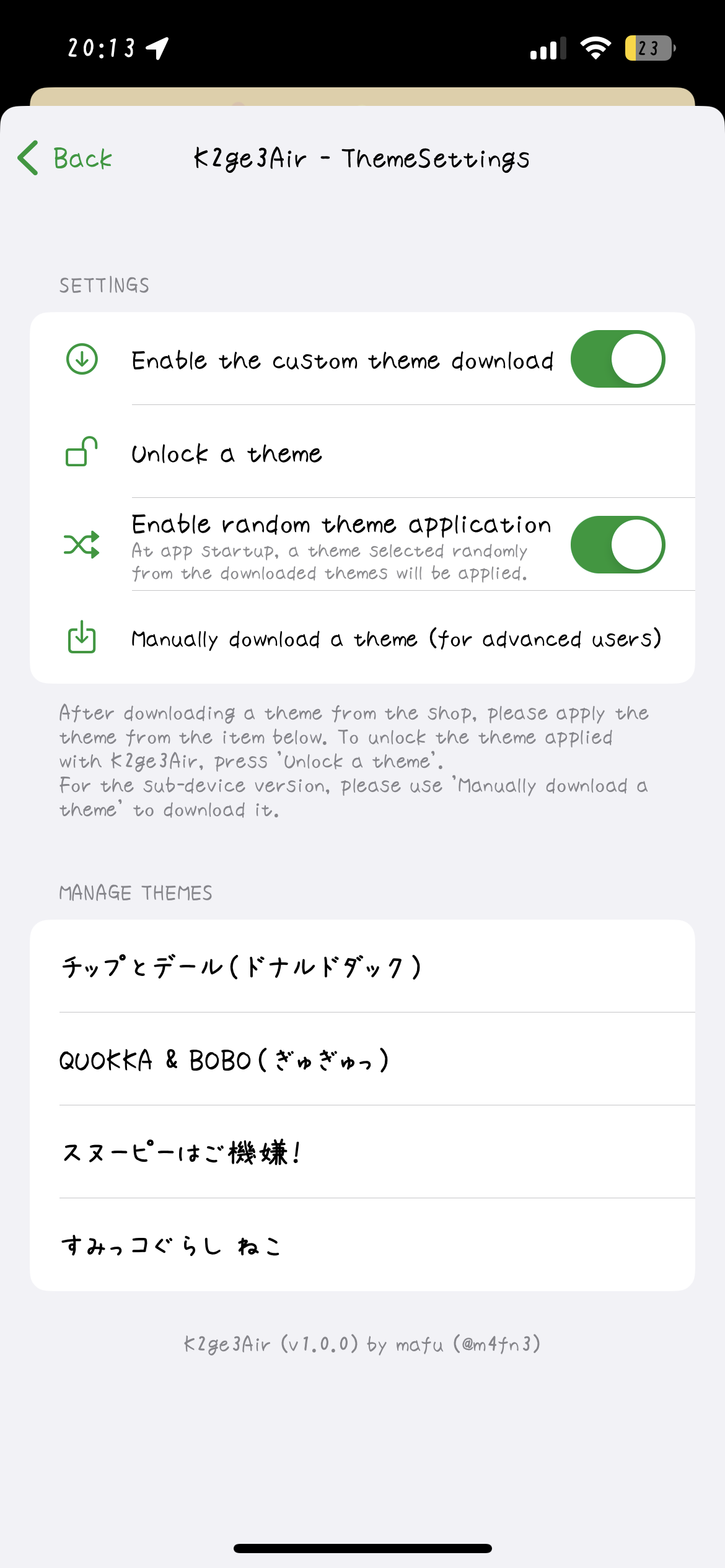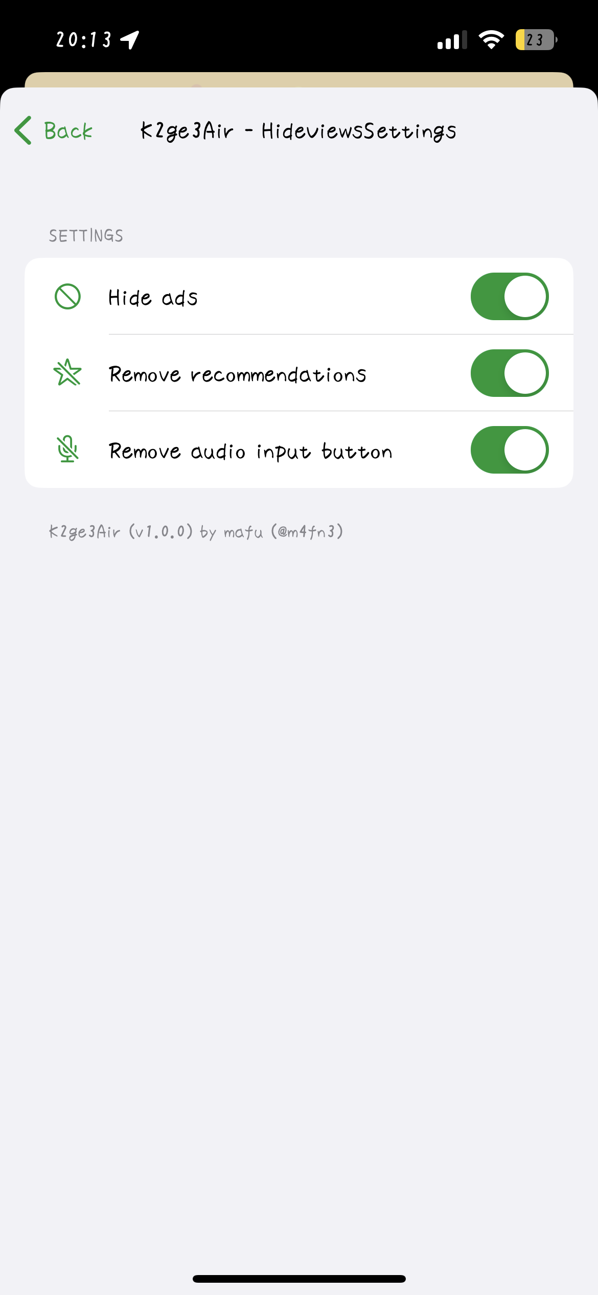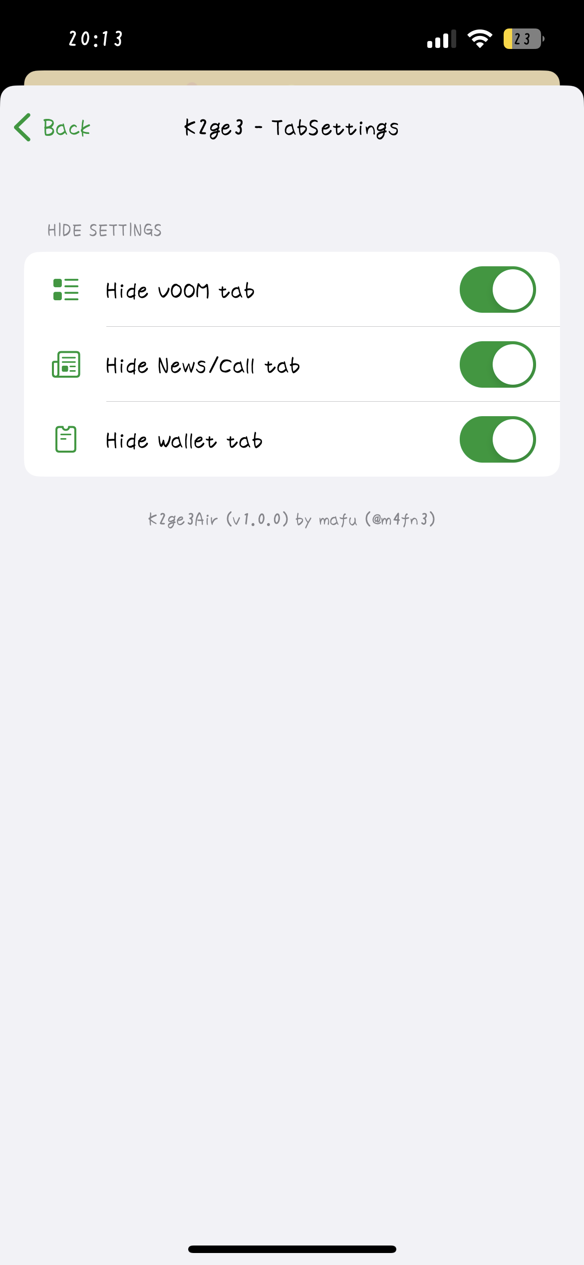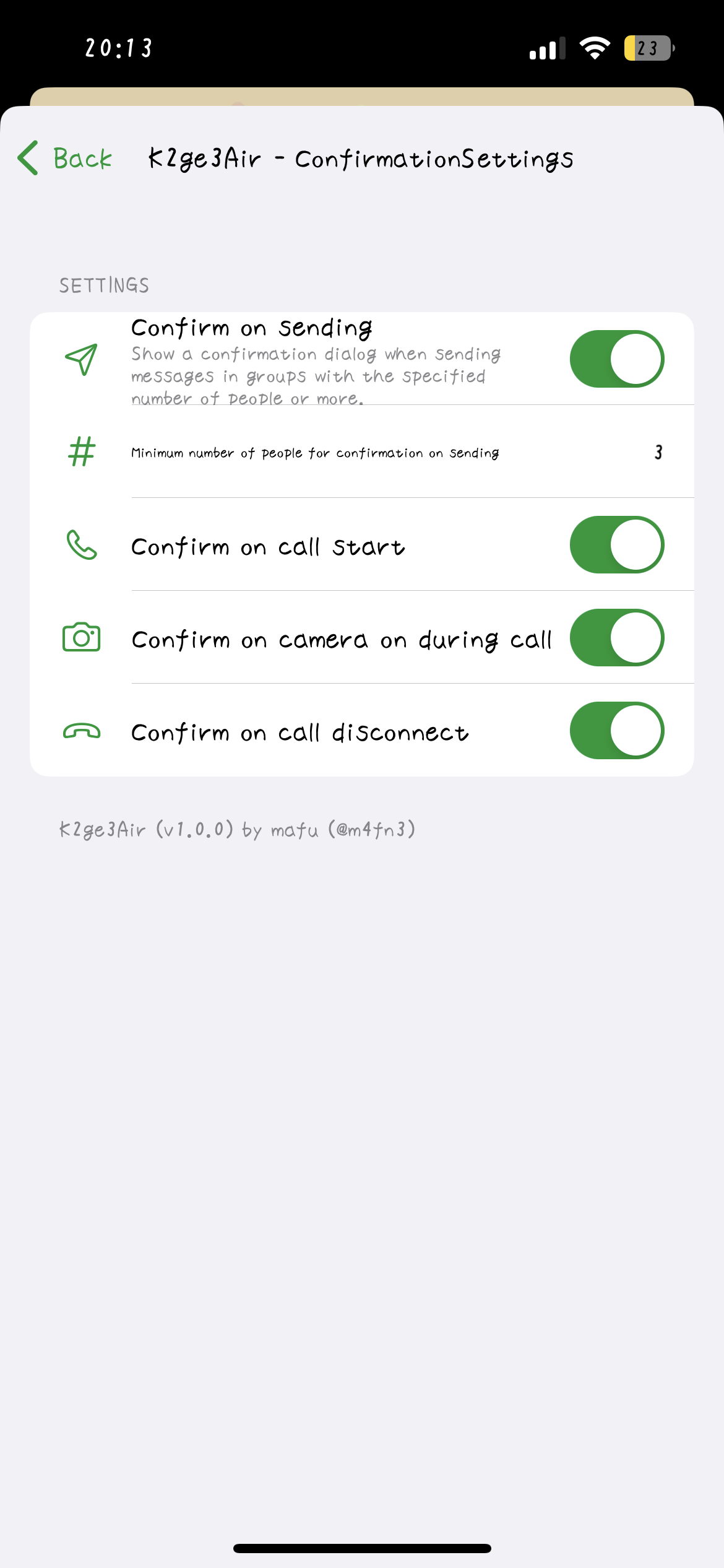 K2ge3Air is a tweak (jailbreak app) that adds convenient features not available in the official LINE app.